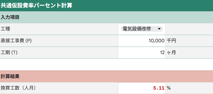 共通仮設費率の計算ツール