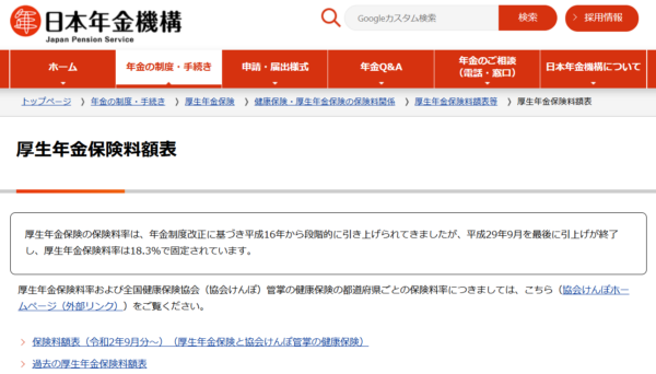 厚生年金保険の保険料率は18.3%で固定されていて、健康保険料と同様に事業主と労働者で9.150%ずつの折半となります。